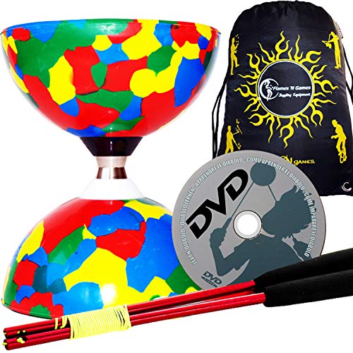 Juggle Dream Jester PRO Diabolo con Cuscinetto a Sfere Set + Bacchette di Alluminio, Cordino, Dvd & Diablo Borsa da Viaggio! (Multicolore + Bacchetta Rosse)