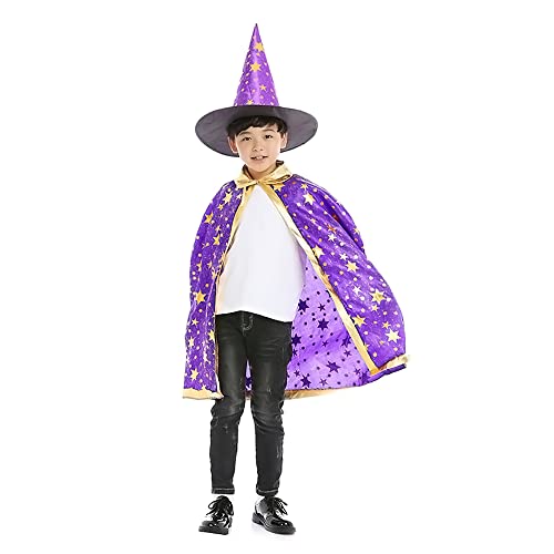 JUHONNZ Costume da Strega di Halloween, Costume da Mago con Cappello da Mago Mantello per Bambini Ragazzo Ragazza Costume Cosplay Festivel (Viola)