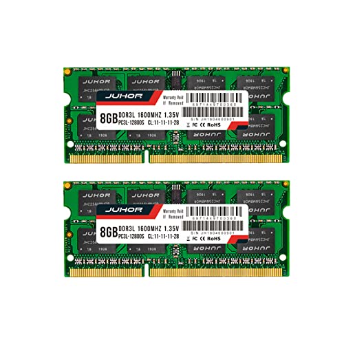 JUHOR Memoria Per Laptop DDR3L RAM 16GB (8GBx2) 1600 MHz (PC3L 12800) 204 pin CL11 1,35V Modulo di Memoria per Notebook SODIMM Modulo Kit di Memorie (verde)