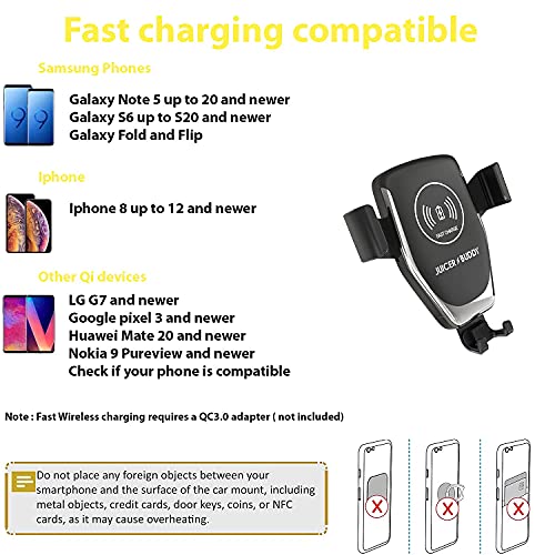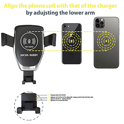 Juicer Buddy Caricatore wireless auto,Caricatore Wireless Auto,Auto-Bloccaggio Supporto Telefono Auto, Ricarica Wireless Auto, Porta cellulare, Carica veloce per iPhone 8+ Samsung Galaxy S9+ e Altri