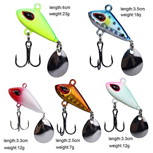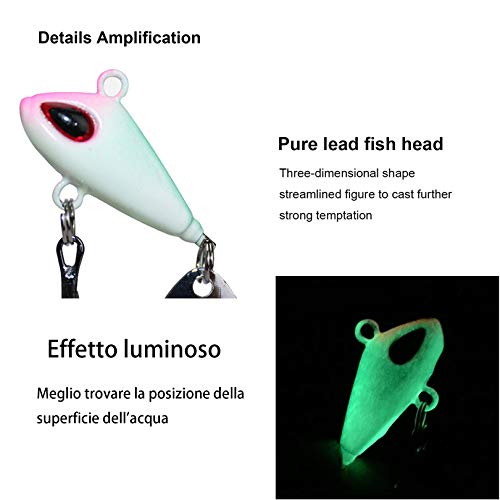 Quantità: il set di spinner da pesca contiene 5 esche da pesca VIB. Uno di loro è luminoso