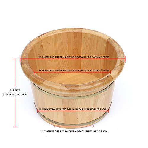 Qualità premium: realizzato in legno di cipresso di alta qualità, resistente e pratico. L'acqua bollente ad alta temperatura non deformerà il pediluvio.