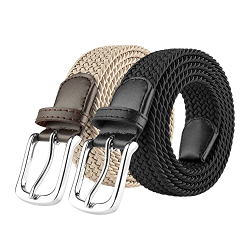 JUKMO 2 Pacchi Cintura Elastica Intrecciata per Uomo e Donna, Cintura in Tessuto Elastico Allungare in Confezione Regalo (Nero+Cachi, M-per Vita 81cm-90cm (Lunghezza 105cm))