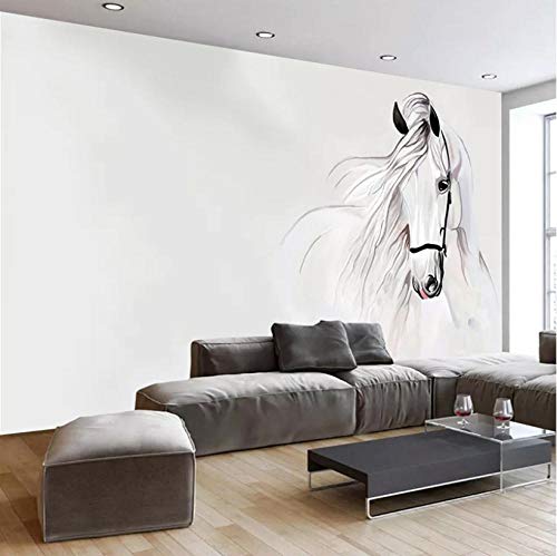 Jukunlun Personalizzato Foto 3D Murale Carta Da Parati Camera Da Letto Parete, Dipinto A Mano Cavallo Bianco Arte Astratta Decorazione Murale Soggiorno-400X280Cm