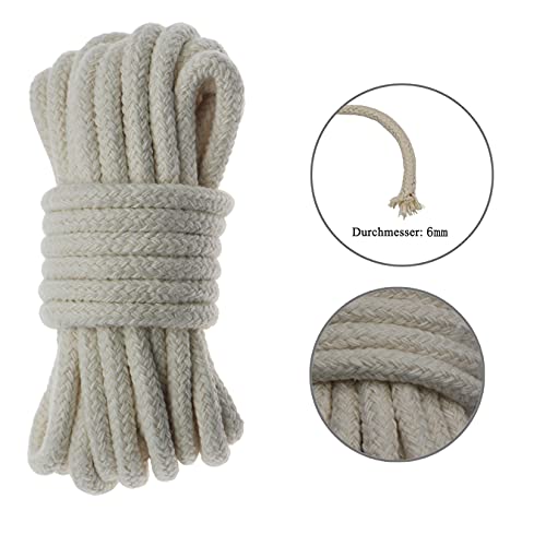 Jukway Corda in Cotone Naturale 6mm, Corda Intrecciata Rotonda 5m/16piedi con Anima, Morbida Legare Cavo Versatile per Cucire, Impacchettare, Decorazioni DIY, Artigianali - Bianco Grezzo (5M)