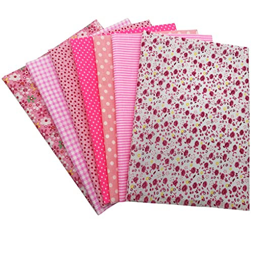 Jukway 7 Pezzi Tessuto di Cotone 50x 50 cm Stampati Stoffa Patchwork Quadrati Tessuti Bundle Design Assortiti Trapuntato Cucito fai da te Decorazione Artigianato Quilting Scrapbooking (Rosa)