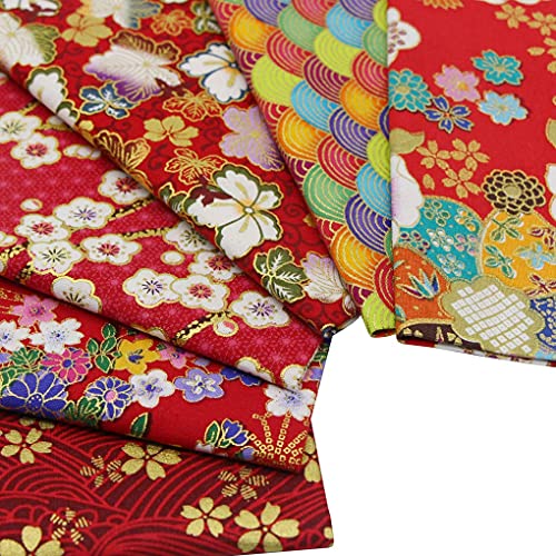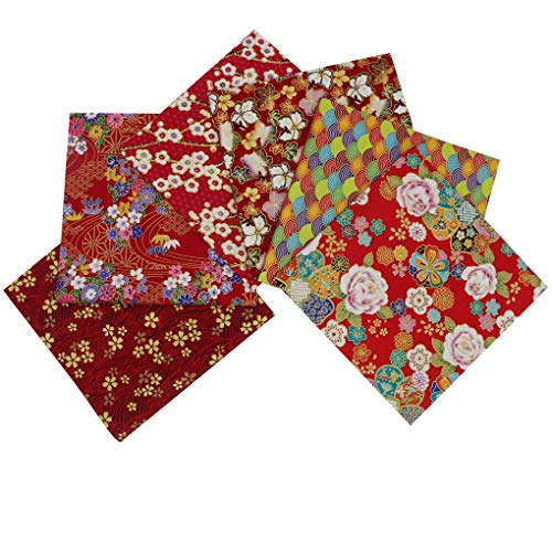 Jukway 6 Pezzi Tessuto Cotone Stile Giapponese 40 x 40 cm Stoffa Patchwork, Tessuti Bronzante Motivi Floreali Stoffe per Cucito Creativo, Trapuntatura, Decorazione, Hobby Artigianale (Rosso)