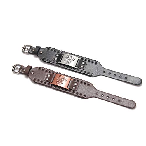 Juland Braccialetto in lega di corda intrecciata punk, braccialetto in pelle PU, bracciale da uomo, con testa di lupo, polsino largo in pelle, regolabile, 2 pezzi - testa di lupo