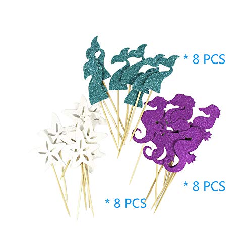 Juland 24 Pezzi Buon Compleanno Cake Topper Cupcake Topper di Carta Durevole Versatile per Torte per Feste di Compleanno per Adulti Bambini Stella Marina Coda di Sirena Cavalluccio Marino