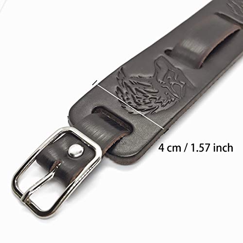 Juland Stile Punk Braccialetto di Pelle Braccialetti con Testa di Lupo Largo Bracciale Rigido con Cinturino Rock Wrap per Men Boy Regolabile - Marrone