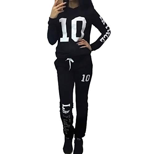 Juleya Donna Tuta Sportiva Abbigliamento Sportivo Morbida Comoda Pullover a Maniche Lunghe Pantaloni 2 Pezzi Vestiti Set Felpa Sportiva Pantaloni Fitness Yoga Tute 4 Colori S-3XL (S, Nero)