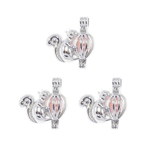 Julie Wang 10PCS all' ingrosso Bulk Silver Lockets aromaterapia diffusore di oli essenziali con pietra lavica perline gabbie ciondolo ciondoli scoiattolo con dadi