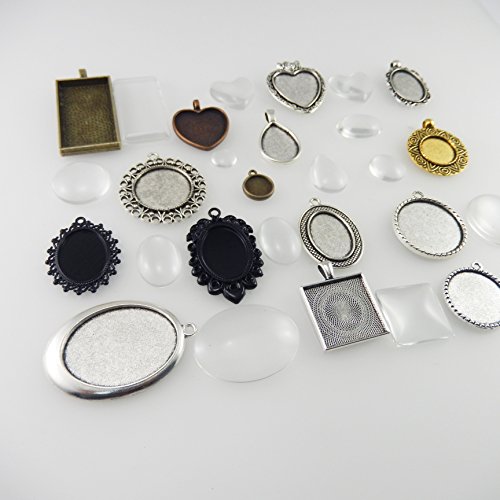 Include ciondoli per foto rotondi, ovali, quadrati e rettangolari, a forma di cuore, kit pronto all'uso fai da te, ciondoli in vetro.