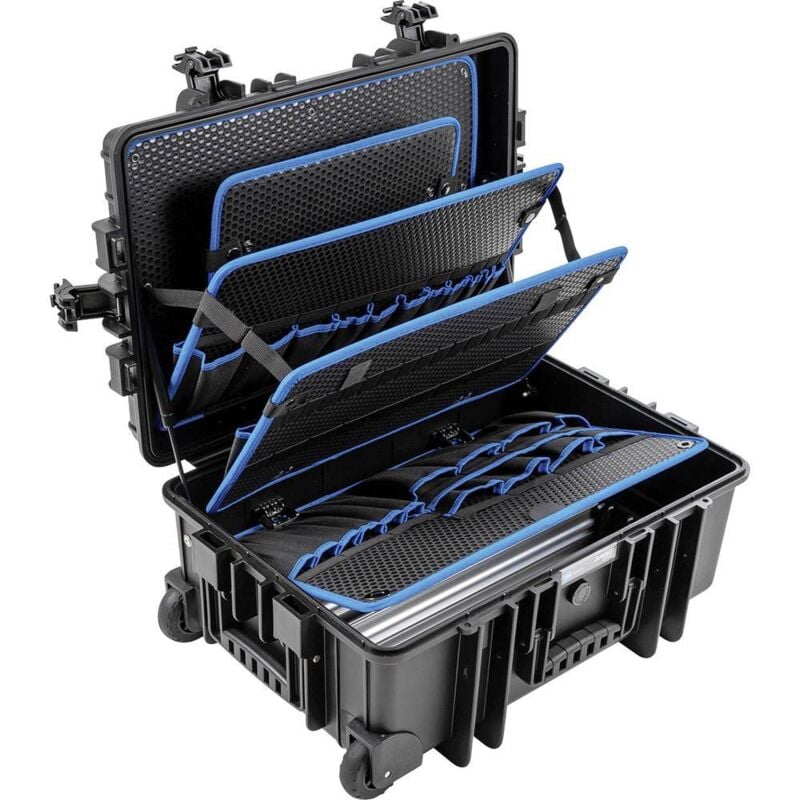 Dettagli tecnici Caratteristiche borsa porta utensili con ruote, maniglia a scomparsa Colore Nero Dimensione del prodotto, larghezza 595 mm Dimensione, profondità 440 mm Dimensioni (L x A x P) 595 x 235 x 440 mm Dimensioni prodotto Altezza 235 mm Famiglia colore Nero Materiale Polipropilene Settore di utilizzo Universale Tipo prodotto Valigetta porta utensili senza contenuto Caratteristiche Portadocumenti sul coperchio Pannello degli attrezzi rimovibile nel coperchio con tasche Piastra di copertura rimovibile per il vassoio inferiore con tasche vassoio del pavimento richiudibile singolarmente divisibile tramite sistema brevettato di separazione in alluminio (3 divisori, 6 cappucci terminali, 4 cappucci centrali (con viti) - altezza = 70 mm impermeabile Ermetica Infrangibile Progettata per un intervallo di temperatura da -40 °C a + 80 °C Valigetta resistente agli urti in polipropilene Superstabile e impilabile Impermeabile alla polvere e all'acqua secondo la classe di protezione IP 67