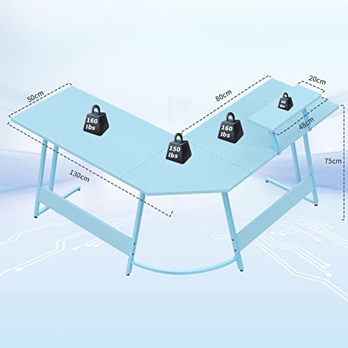 JUMMICO Scrivania a Forma Di L, Tavolo Da Gioco Con Supporto per Monitor, Scrivania Ergonomica Per Computer, ad Angolo, a Forma Di L, Grande Tavolo Angolare in PVC, 130 x 130 x 75 cm, Azzurro