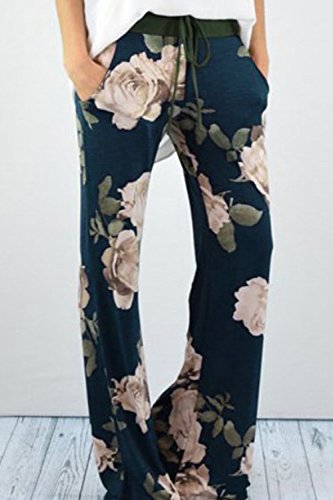 Jumojufol Le Estate Ampia Direttamente Razzo Gamba metà Vita Palazzo Floreali Fitness Pantaloni Lunghi con Cintura Floral L