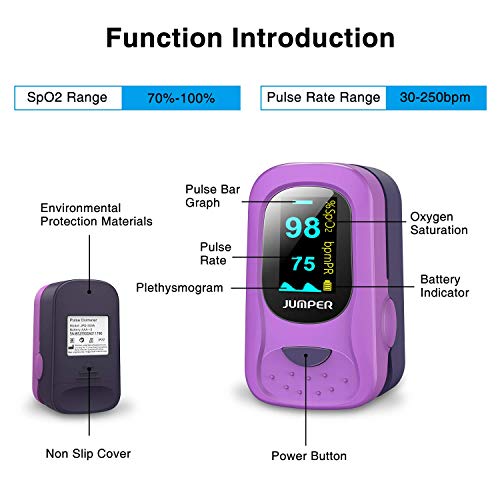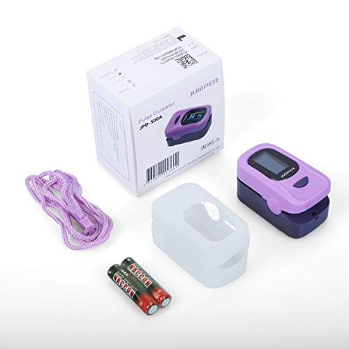 JUMPER Finger Pulsossimetro 500A Meter Pulse Portable - SpO2 (Saturazione di Ossigeno nel Sangue) e Monitor di Frequenza Cardiaca - Con Display Digitale LED, CE & Approvato Dalla FDA