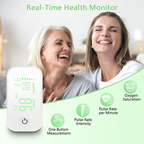 JUMPER Pulsossimetro con Ampio Display per la Misurazione di SpO2, Indice di Perfusione e Frequenza del Polso sul Dito, con Custodia, Batterie e Cordino (Bianco)