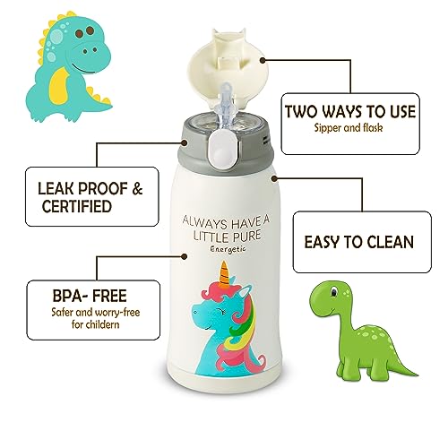 Isolante: questa borraccia per bambini è isolata con doppie pareti in acciaio 304, mantenendo le bevande fredde e calde per periodi di tempo più lunghi. È perfetto per le giornate fuori al sole o al freddo. Caldo per 12 e freddo per 24 ore.