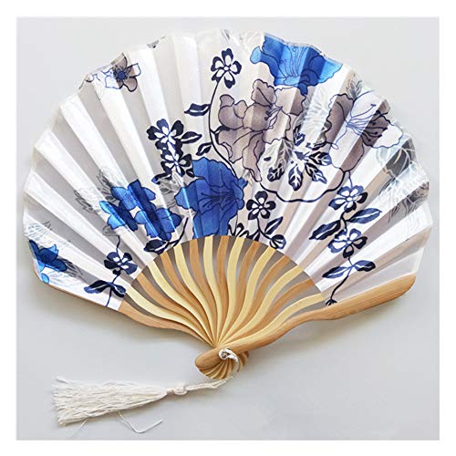 Junchen&Zhang Signora in possesso di Un ventaglio a Forma di Conchiglia, Pieghevole, Portatile,Ventaglio Giapponese Vintage in Tessuto di Seta,con Borsa (Blu e Bianco)