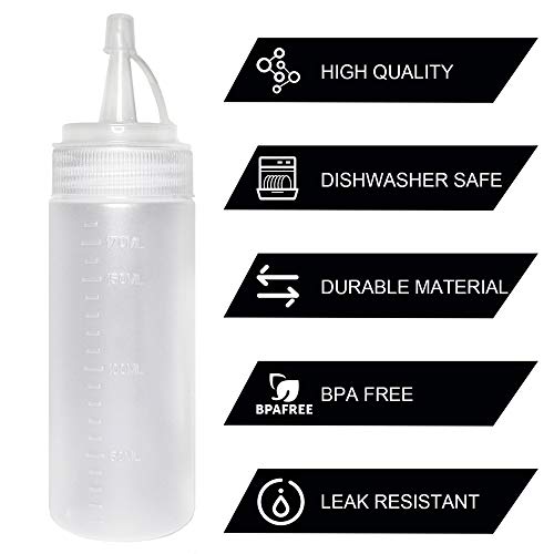 Juncture Bottiglia Squeeze di Plastica, 12pcs 200ml Bottiglia per Squeeze con Tappi, Trasparente Condimento Dispenser - a Prova di Perdite e Senza BPA, per Ketchup, Mayo, Olio d'oliva