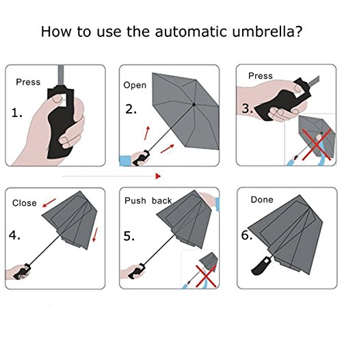 Funzionamento automatico: il telaio si apre e chiude rapidamente con la semplice pressione di un pulsante. Quando ci si trova sotto un acquazzone inaspettato, non vi bagnerete riuscendo ad aprire l'ombrello in meno di un secondo. Facile e semplice da usare con una sola mano. Potrete aprire e chiudere l'ombrello in poco tempo anche con le mani impegnate.