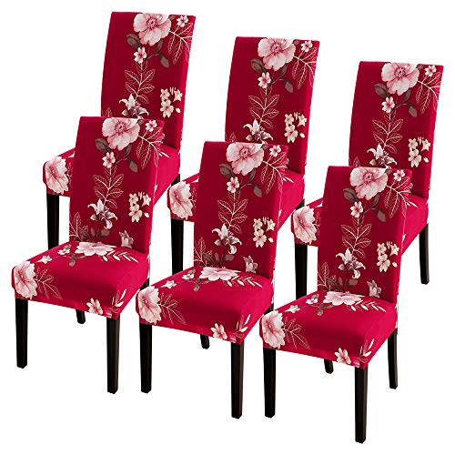 JuneJour Coprisedia con Schienale 6 Pezzi,Fodere per Sedia Sala da Pranzo Elasticizzato,Lavabile Estraibile,Copertura della Sedia Universale per Casa,Ristorante,Hotel,Soggiorno(Set di 6,rosso)
