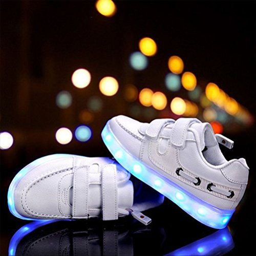 Junglest [Presente:Piccolo Asciugamano] c43 EU 36, Atletici Velcro Boy Maniera Kid da Up Scarpe Lampeggianti Shoes LED Light USB ricari