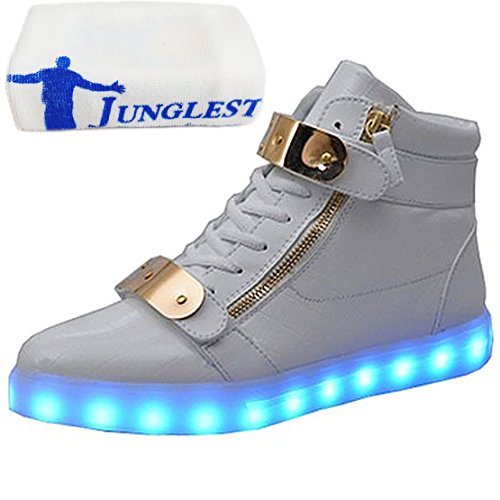 Junglest [Presente:Piccolo Asciugamano] Bianca EU 40, Lampeggiante Sneakers USB Partito Adulto Carica Bambini Luminosi 7 LED Scarpe High-Top Scarpe per Unisex Maniera Passegg