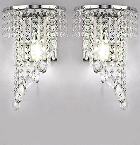 Junhong Lighting Una Coppia E14 Moderno K9 Specchio Di Cristallo In Acciaio Inox Applique Da Parete Lampada da parete per Corridoio Scala Pernottamento Lampada Apparecchi Luce Con Interruttore (Cromo)