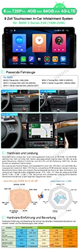 JUNHUA 9" Android 11 8 core 4 + 64 GB Wireless Carplay Android Auto GPS Autoradio Navi per BMW E46 M3 325 3 318 320, con built-in 4G LTE, supporta Bluetooth WiFi FM Radio RDS