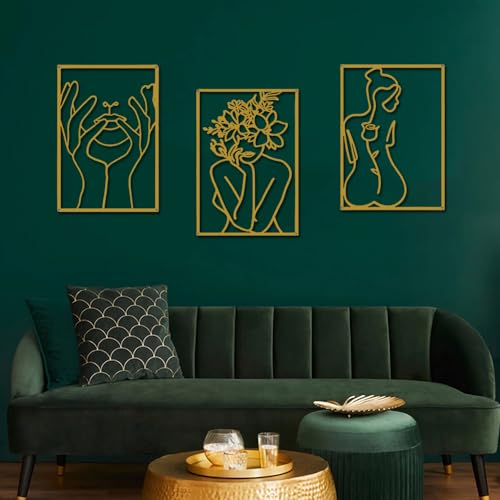 Junhui 3 Pezzi Decorazioni da Parete Dorate Murales, Decorazione da Parete Moderna Femminile Arte Astratta Minimalista, Sculture a Parete in Metallo da Decorazione, Decorazione per La Casa