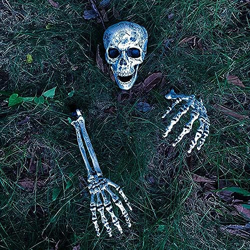 Facile da Montare: L'estremità dell'osso della mano è dotata di punte che penetrano in profondità nel terreno per garantire un fissaggio perfetto. Per montare questa decorazione per scheletri, è sufficiente inserire i picchetti delle braccia nel terreno. Quindi posizionare il teschio nel mezzo.