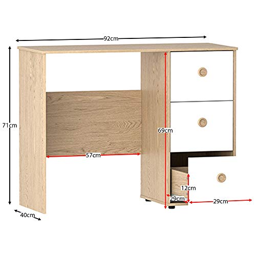 Junior Vida Neptune 3 Cassetti Scrivania per Computer Portatile Home Study Workstation Bambini Mobili per Bambini (Bianco e Rovere), Truciolato, Altezza 71 x Larghezza 92 x Profondità 40 cm Circa