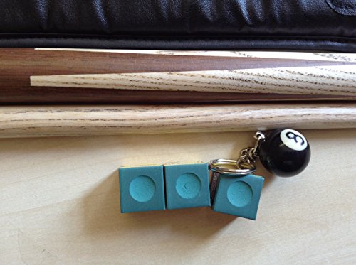 Junior 2 piece 4ft, 48,snooker pool cue & soft case,3 Triangle green chalks and 8 ball keyring