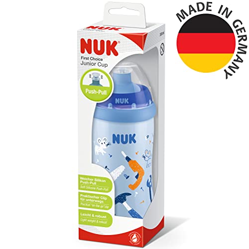 NUK Junior Cup tazza borraccia per bambini | 18+ mesi | Beccuccio spingi e tira a prova di perdite | Clip e cappuccio protettivo | Senza BPA | 300 ml | Azzurro Craft