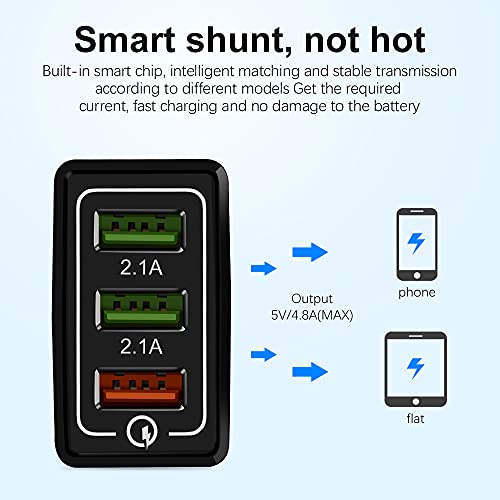 Ricarica Sicura & Intelligente: Il caricatore USB è realizzato in materiale ignifugo e il sistema di sicurezza integrato protegge il dispositivo e il caricabatterie USB stesso da sovraccarico, surriscaldamento, cortocircuito, ecc.