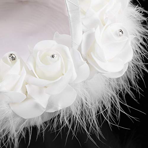 Junluck Cesto di Fiori da Sposa, Cesto di Pizzo da Sposa, Cesto di Fiori da Ragazza, Piuma di Struzzo di Colore Bianco Squisito per Piccoli Regali con Fiori