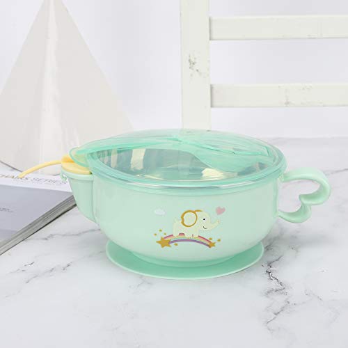 Junluck Ciotola isolata, iniezione d'Acqua 400 ml Ciotola per Alimenti a Forma di Animale, per trattenere Il Calore(Stainless Steel Bowl Green Baby Elephant)