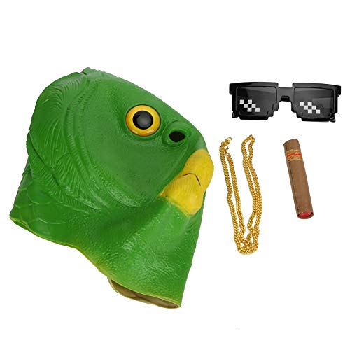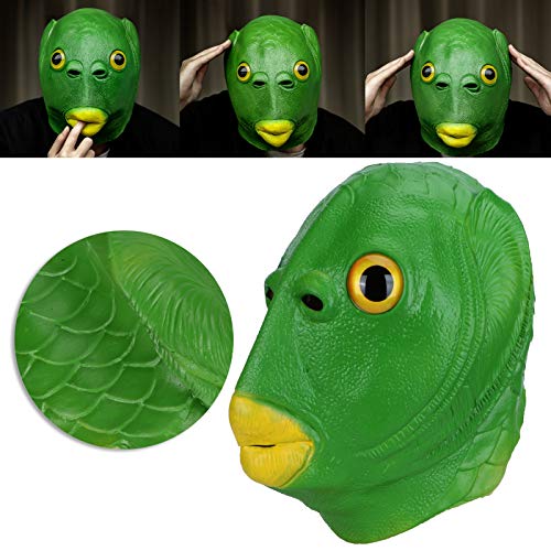 Junlucki Maschere di Testa di Animale in Lattice Maschera da Rana con Copertura per Il Viso di Pesce Verde Copricapo Divertente Puntello Cosplay per Animali Adulti per Halloween/Natale/Carnevale