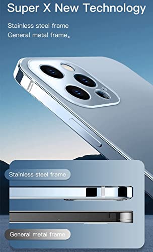 JUNRAN 2022 Sierra Blue Stainless Steel Frame Matte Case Cover Suitable for iPhone XR/12/12Pro/12Pro Max/13/13Pro/13Pro Max (Gold,for iPhone 13 PRO)