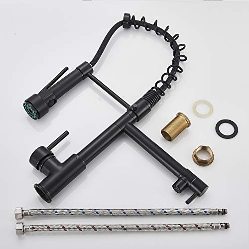 JUNSHENG Alto Pressione Rubinetto con Doccetta Estraibile Monocomando Rubinetto da Cucina Ottone per Cucina Girevole a 360° Acqua Fredda e Calda Rubinetto Nero