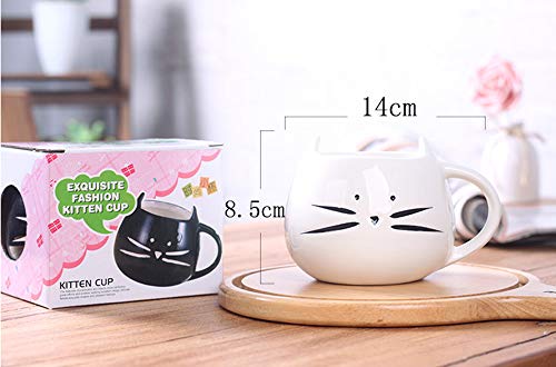 JUNSHUO 2Pcs Carina Tazze Ceramici Gatto 300ml, Innovativi Cat Modello Tazze di Coppia San Valentino, Divertenti Personalizzabile Tazze da Cappuccino per caffè/tè/Latte, Bianco e Nero