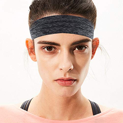 JUNSHUO 2 Pezzi Elastica Sport Fasce Fascia per Capelli, Non Scivolare Allungare e Assorbimento dell'Umidità Uomini e Donne Sport Elastici Bande di Testa per Yoga, Esecuzione, Ciclismo Tennis (Grigio)