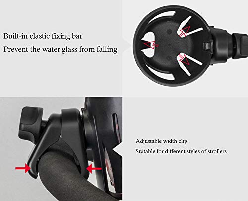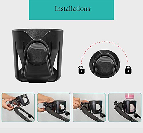 JUNSHUO Portabicchieri per Passeggino, Universale Regolabile Portabevande, Regolabile 360 Gradi Portabibite con 1 Gancio per Passeggino, Buggy e Bicicletta, Sedia a Rotelle e Moto, Nero