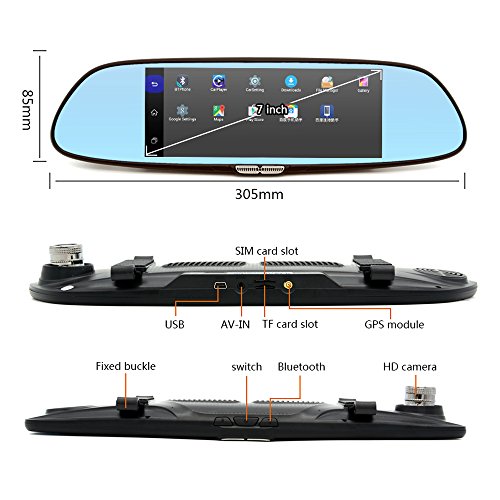 Junsun 7" Dash Cam Telecamera per Auto Full HD 1080P Specchietto Retrovisore Navigatore Sattelitare GPS Android 5.0 con 3G