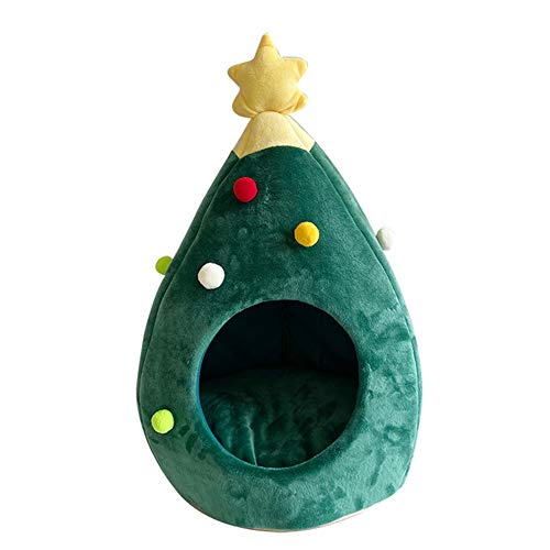 Juntful - Cuccia a Forma di Albero di Natale, semichiusa, Morbida Cuccia per Gatti e Cani, Small