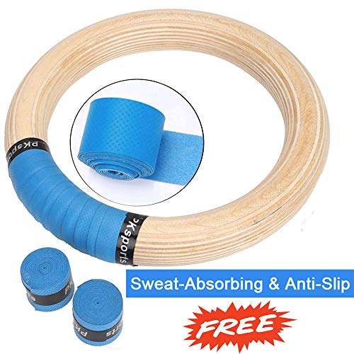 Junyito Anelli Ginnastica in Legno 28mm Anelli Calisthenics Gravity con Cinghie per Esercitarsi Allenamenti Forza Muscolare Allenamento