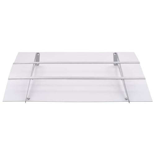 JUNZAI Pensilina per Porta Argento Trasparente 120x90 cm Policarbonato,Impermeabile e Anti-UV, Pensilina Tettoia per Porta Balcone Esterno