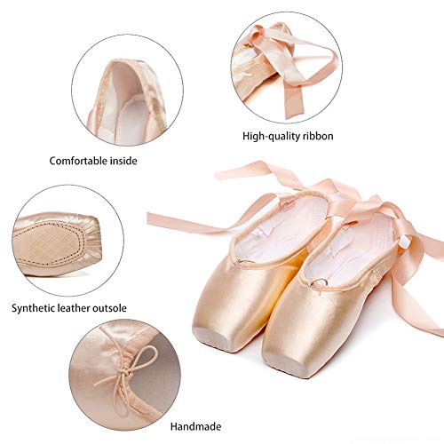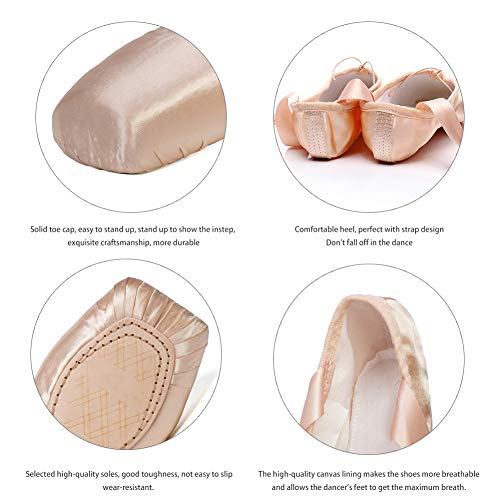 JUODVMP Classica Punte Pointe Balletto Rosa Scarpe da Ballo Comprende Scarpette salvapunte e Nastri per Donna e Ragazza Modello TJ-ZJBL,30EU